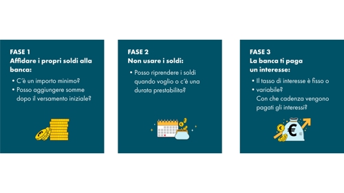 Il funzionamento – la user experience se vogliamo – di tutti i prodotti di risparmio bancari si può dividere in tre fasi: